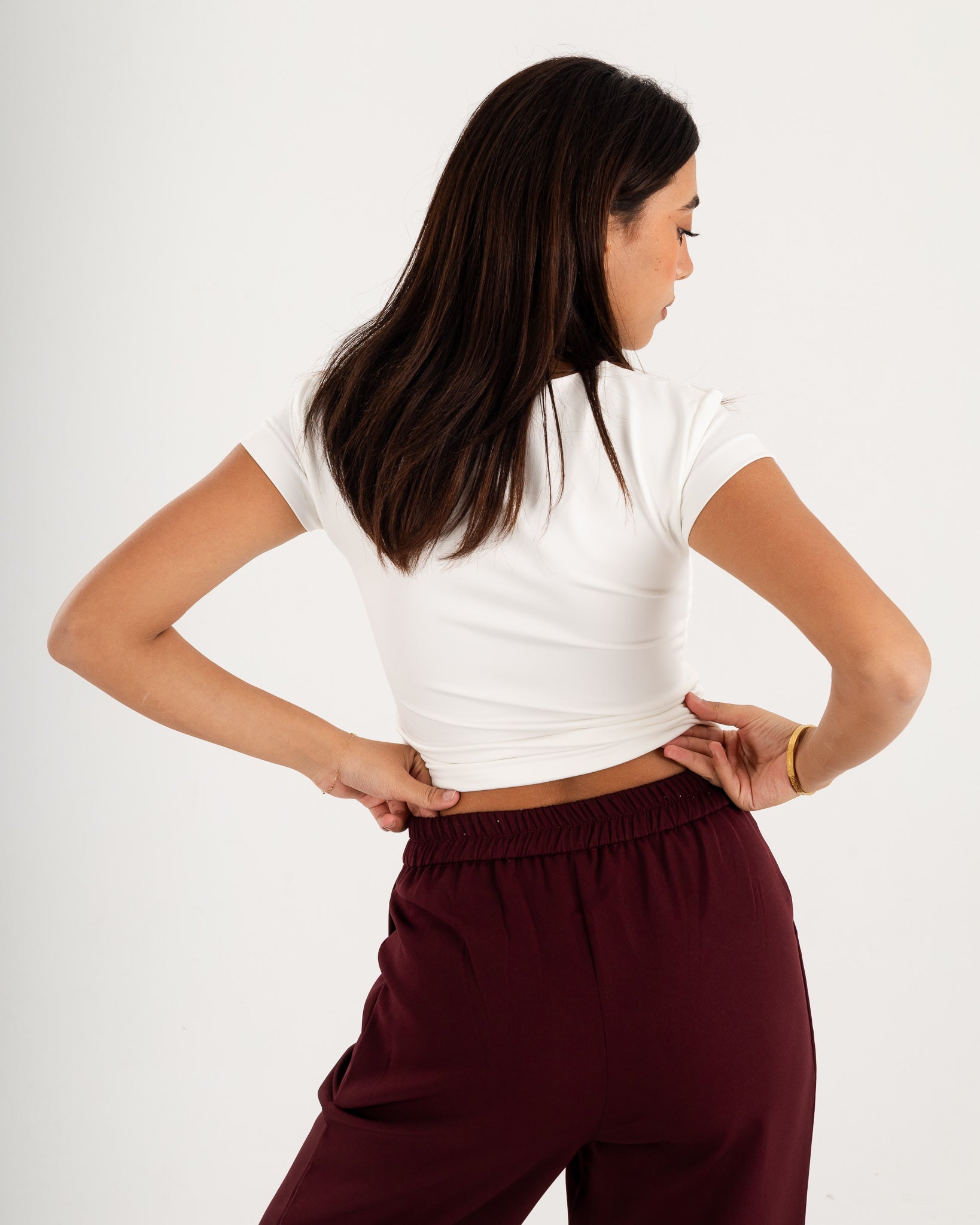 Basic Crew Neck Top - Short Sleeve - Double Layers.