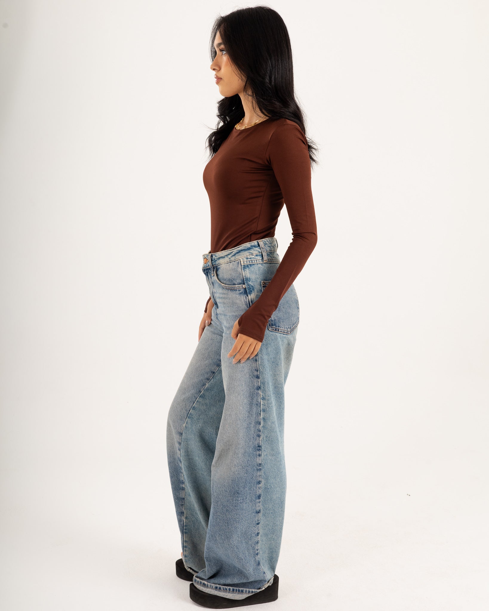 Basic Long Sleeve Top - Slit Cuff - Double Layers.